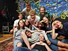Gjengen gleder seg til en uke med absurde sketsjer og improvisert moro. Fra venstre: Brita Gran Økland, Tobias Kolbjørnsen, Jonas Bern, Ellen Andenæs Sekulic, Philip Helgar, Kristian Bakke Kilde, Maria Guldteig, Gustav Lie Gundersen, Erik Goplen & Tevje Espeland på guvet.Foto: Petter Terning