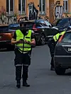 Politiet sjekker papirene til bilføreren.Foto: VårtOslo