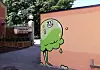 På den andre siden av Sofienbergparken, nede ved Sofienberggata, kikker en skøyeraktig og litt varm pistasjkule frem på et hjørne.