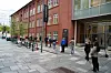 Lange polkøer før 17. mai. På Hasle torg strekker køen seg langt utenfor senteret