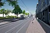 Slik blir det når trikken passerer Birkelunden.Illustrasjon: Bymiljøetaten