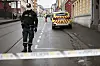 Politiet på stedet der en person ble funnet hardt skadd utenfor oppgangen til en boligblokk i Vogts gate på Grünerløkka.Foto: Javad Parsa / NTB