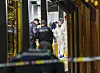 Sikring av bevis inne i butikken etter knivstikkingen.Foto: Terje Bendiksby / NTB