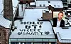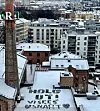 Budskapet er skrevet på jobbterrassen til Tommy og kollegene.