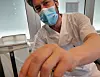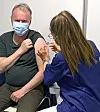 Sykepleier Dominic setter første vaksinedose på VårtOslos medarbeider André Kjernsli.Foto: André Kjernsli