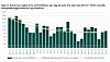 Trendlinja viser en nedgang i første halvdel av perioden og så en utflating.Grafikk: Helseetaten / Oslo kommune