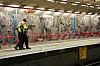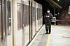 Politiet på perrongen på Romsås T-banestasjon etter knivstikkingen tirsdag.