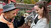 Harald Nissen (til venstre) foreslo i 2014 at Oslo kommune skulle bidra til å etablere et smådyrmottak. Her hilser han på en i målgruppen. Til høyre Helle Langmoen i Dyrebeskyttelsen Norge.Foto: Lars-Ludvig Røed
