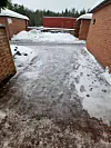 — Vi betaler høye kommunale avgifter på Romsås, så det er synd at dette er standarden, sier Stian Rino om den isbelagte veien utenfor leilighetene på Ravnkollen.Foto: Tips / Privat