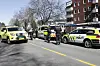 Et massivt politioppbud utenfor blokka der knivstikkingen skal ha skjedd.
