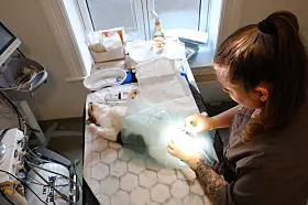 Veterinær Caroline Holtet forklarer at kastrering er viktig for å redusere overpopulasjon og forbedre dyrets trivsel.