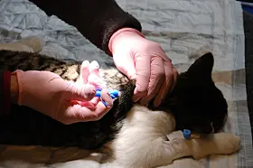 Øyedråper gis til kattene, som ligger med øynene åpne under hele bedøvelsesprosessen. Dermed barberes pelsen nedentil bort slik at veterinærene kommer til.