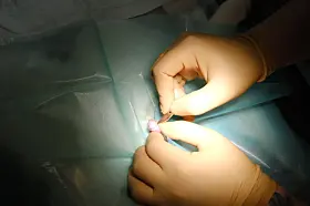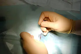 – Det blir et lite sår i huden som klemmes sammen, så vi verken syr eller limer noe igjen.