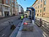 Enkeltsporet for trikken ble fjernet i Grefsenveien i går.Foto: Sporveien