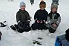 Det ligger allerede to abbor på isen, og Magnus (8), Aksel (6) og Emil (4) venter spent på neste napp