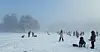 Gradestokken viste litt under null grader, og en lett tåke lå over isen på Sognsvann. Sola slet litt med å bryte igjennom, men sol og tåke lagde flotte vinterbilder. Isen var rundt 40 cm tykk, og jevn og hard hele veien.