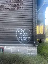 «7. oct 11. sep» var tagget på veggen til kontorbygget Villa Eika.Foto: Emil Kvebæk Øvretveit