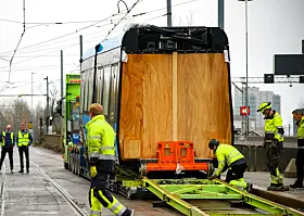 Den siste SL18-trikken ankom Grefsen i to deler på