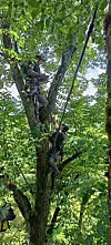 Politiet er på vei opp i lindetreet for å hente ned Pål Toft-Eriksen. På dette tidspunktet har han klart å klatre over i et nytt tre.Foto: Pål Toft-Eriksen