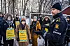 Politiets innsatsleder i samtale med aksjonister fra Redd Ullevål sykehus mandag da de nektet å fjerne seg fra et område hvor det skulle utføres anleggsarbeider.Foto: Ole Berg-Rusten / NTB