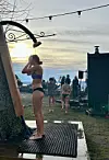 Og om du vil, kan du kjøle deg ned i dusjen rett utenfor badstuen.