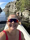 Marit på padletur med samboeren på hytta ved Tvedestrand.Foto: Privat