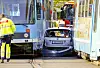 Bil klemt mellom to trikker i Grefsenveien