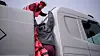 Her blir klimaaktivistene saget vekk og båret ned fra lastebilen. Video: Extinction Rebellion