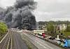 Til høyre for røyken fra lastebilen sees taket på Bryn senter, som ligger tett inntil avkjøringen fra Ring 3.Foto: Lars-Bendik Borgersen / NTB