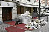 Blomster på stedet i Godliaskogen i forrige måned der Metkel Betew ble funnet drept i påsken.