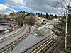 INGEN KRAPPE SVINGER: De gamle sporene til Østensjøbanen svinger seg opp åssiden, mens ny trasé vil tillate høy fart over nye Østensjøveien bru og inn i tunnelen. Lambertseterbanen til høyre.Foto: Sporveien