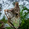– Morgenen etter hadde de også kledd inn garasjerekken der Østensjøvannets Venner har sitt utstyrsdepot. Sakte, men målbevisst, spant de seg ned fra taket, som et skikkelig kollektivt spinneri, sier Billing videre.