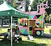 Også når verkstedet ikke er i drift, er snekkerens isbilkonstruksjon med den rosa panteren som frontfigur en lekeplass for barn i parken, som har fått nye lekeapparater.