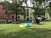 Fra sykkelbiblioteket på Haarklous plass kan du låne leker, ballspill eller bøker, som du kan nyte i skyggen av et tre.Foto: Paul Torvik Nilsen