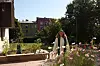 Torshov kirke er nærmeste nabo til et stort antall kommunalt drevne bygårder, som dem i bakgrunnen. Under rehabiliteringen har Torshov kirke også fått etablert en egen kirkehage, med blomster, grønne planter og urter. — Hit inviterer vi folk i nabolaget på kaffe og sammenkomster, sier sokneprest Kleveland.Foto: Paul Torvik Nilsen