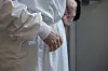 Vigdis Tanke ved Sagenehjemmet i Oslo prøver på Norges første smitteværnsdrakt som er laget av en møbelprodusent.Foto: Karen Gjetrang