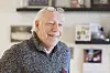Lokalhistoriker og bydelsentusiast Petter Vellesen foran søylene på Soria Moria i Vogts gate. Før fabrikkeier Wilhelm Arnt Blystad bygde Soria, ble det spilt fotballkamper på tomta.Foto: Randi Gydeland