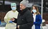 Byrådsleder Raymond Johansen (Ap) (foran) Silje Thorkildson (bak t.v.) og Malin Andersen, under massetesting på Stovner videregående skole.Foto: Berit Roald / NTB