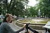 Eli (40) har kommet til fonteneanlegget ved Sagene kirkepark med barna. Hun forteller at hun veldig ofte kommer hit med de minste, som morer seg med vannet i fontenen.