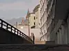 Deichman og Trefoldighetskirken sett fra trappene opp fra Møllergata.Foto: Stillbilde fra videoen «Oslo»