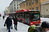 Mange på julehandel reiser kollektivt i dag - og bussene må forserer snøen som faller over Oslo.Foto: Petter Terning