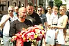 Jon Reidar Øyan (Ap) la ned blomster på stedet der to menn ble skutt og drept utenfor Per på hjørnet natt til 25. juni i år.Foto: Hildur Gudrun Augustsdóttir