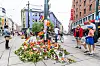 Folk strømmet til etter skytingen i sommer. Her er blomster lagt ned på C.J. Hambros plass i den ene enden av Rosenkrantz gate.Håkon Mosvold Larsen