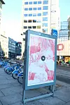 Lørdag åpnet Finucane og Ugelstad opp glassrammer, fjernet reklameplakatene og hang opp bilder fra Unmute Gaza-aksjonen rundt omkring på Jernbanetorget.