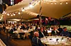 Den kombinerte 50-årsfeiringen og bryllupsdagen samlet 376 gjester fordelt på 48 bord i bakgården på Slottet. Utendørs, men under en lunt tak, omgitt av planter, lys og musikk, fikk gjestene servert grillet kalv og kveite med et rikt utvalg grønnsaker og sauser.