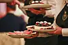 – De ville gjerne ha en fest på Slottet som ikke var helt «slottsk». Derfor har vi skapt noe for første gang – en bakgårdsfest helt i kronprinsparets ånd, sa dronning Sonja i sin velkomsttale da gjestene hadde samlet seg i bakgården.