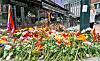 Et blomsterhav omkranser Per på hjørneyt og nabostedet HerrNilsen etter fredagnattas ugjerninger.Foto: Christian Boger