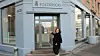 Kommunikasjonsdirektør Hege Njaa Aschim viser veien til informasjonssenteret for det nye regjeringskvartalet på hjørnet av Akersgata og Teatergata.