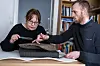 Arkeolog og utgravingsleder Steinar Solheim og Kristel Zilmer, professor i skriftkultur og ikonografi ved Kulturhistorisk museum, studerer den fantastiske runesteinen.Foto: Javad Parsa / NTB