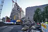 D-blokken blir liggende bak Høyblokka, og har reist seg bak den gamle politistasjonen ved Youngstorget.Foto: Thomas Fure / NTB